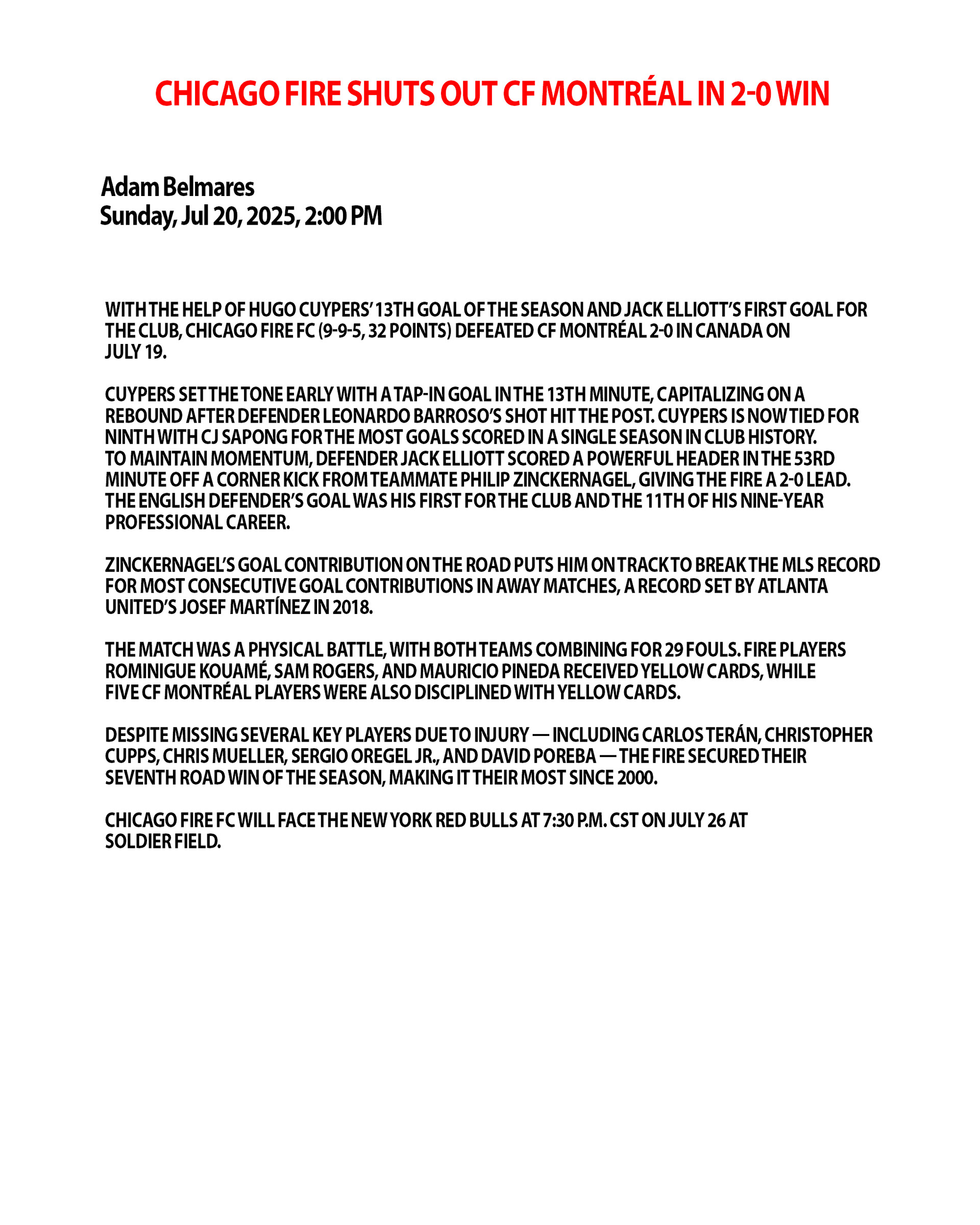 CHICAGO FIRE at CF MONTREAL 7.19.25