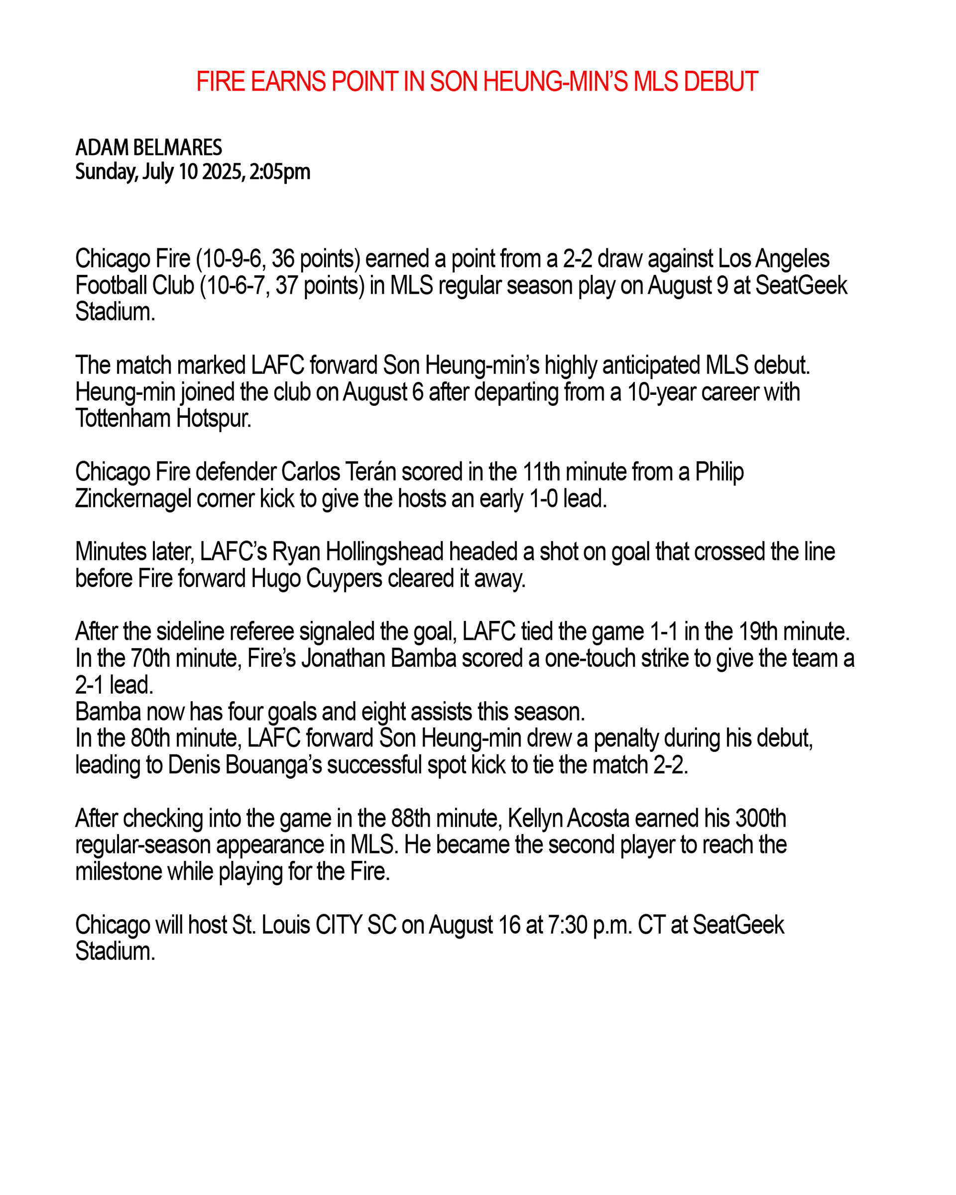 CHICAGO FIRE FC v LAFC MLS 8.09.25
