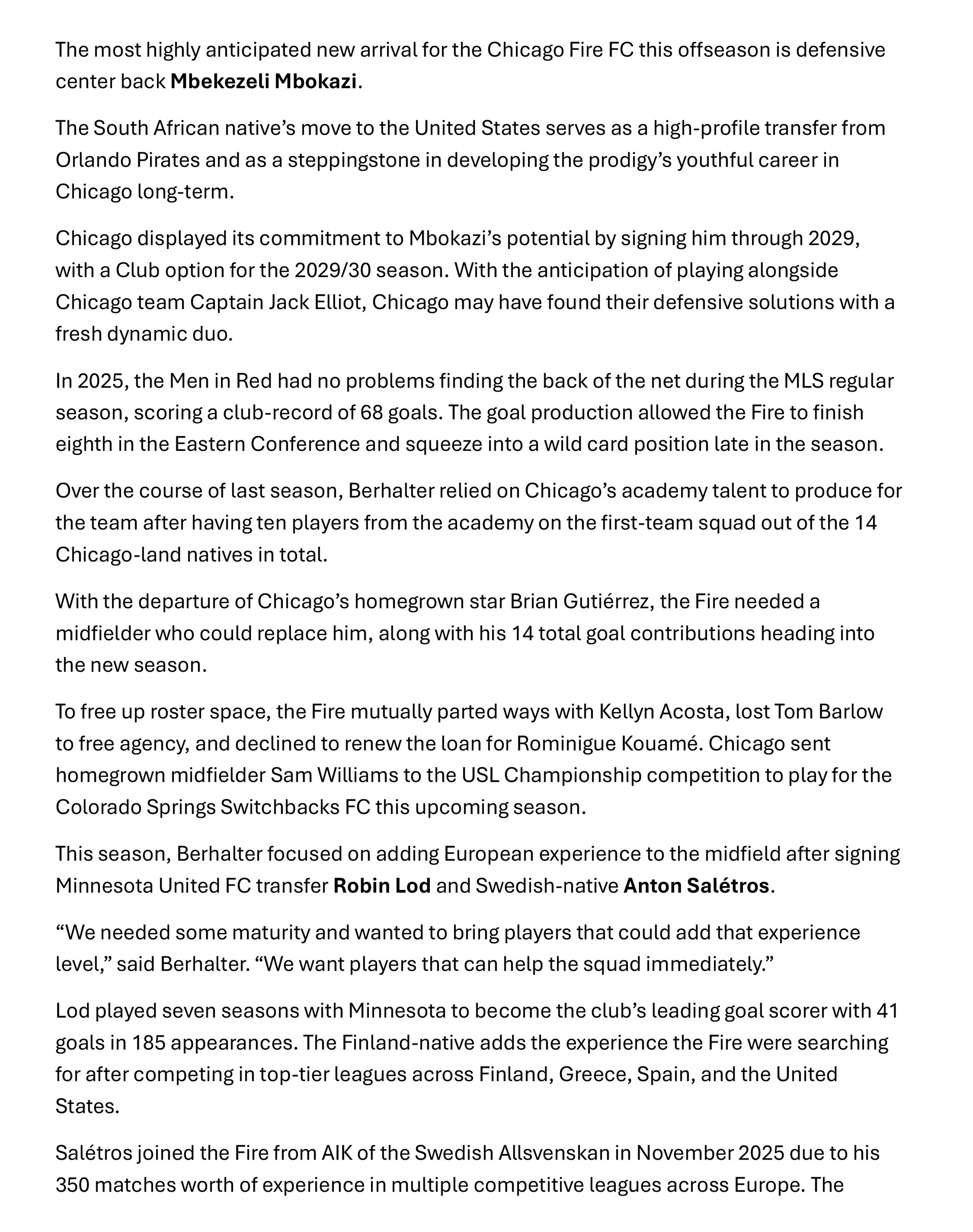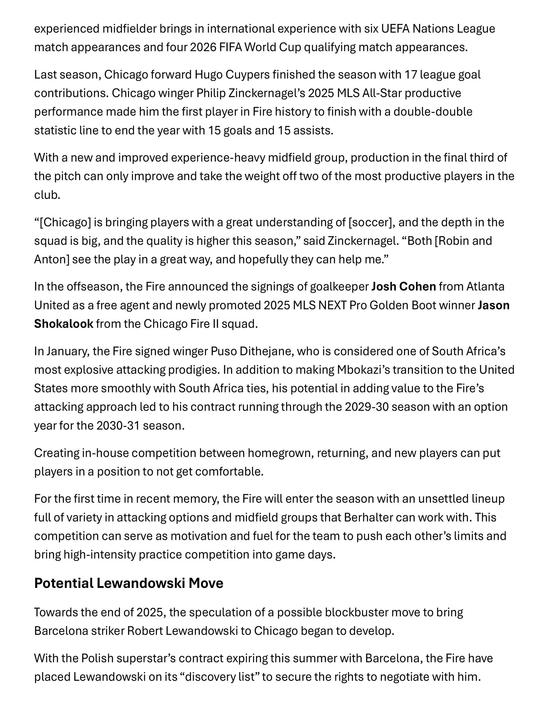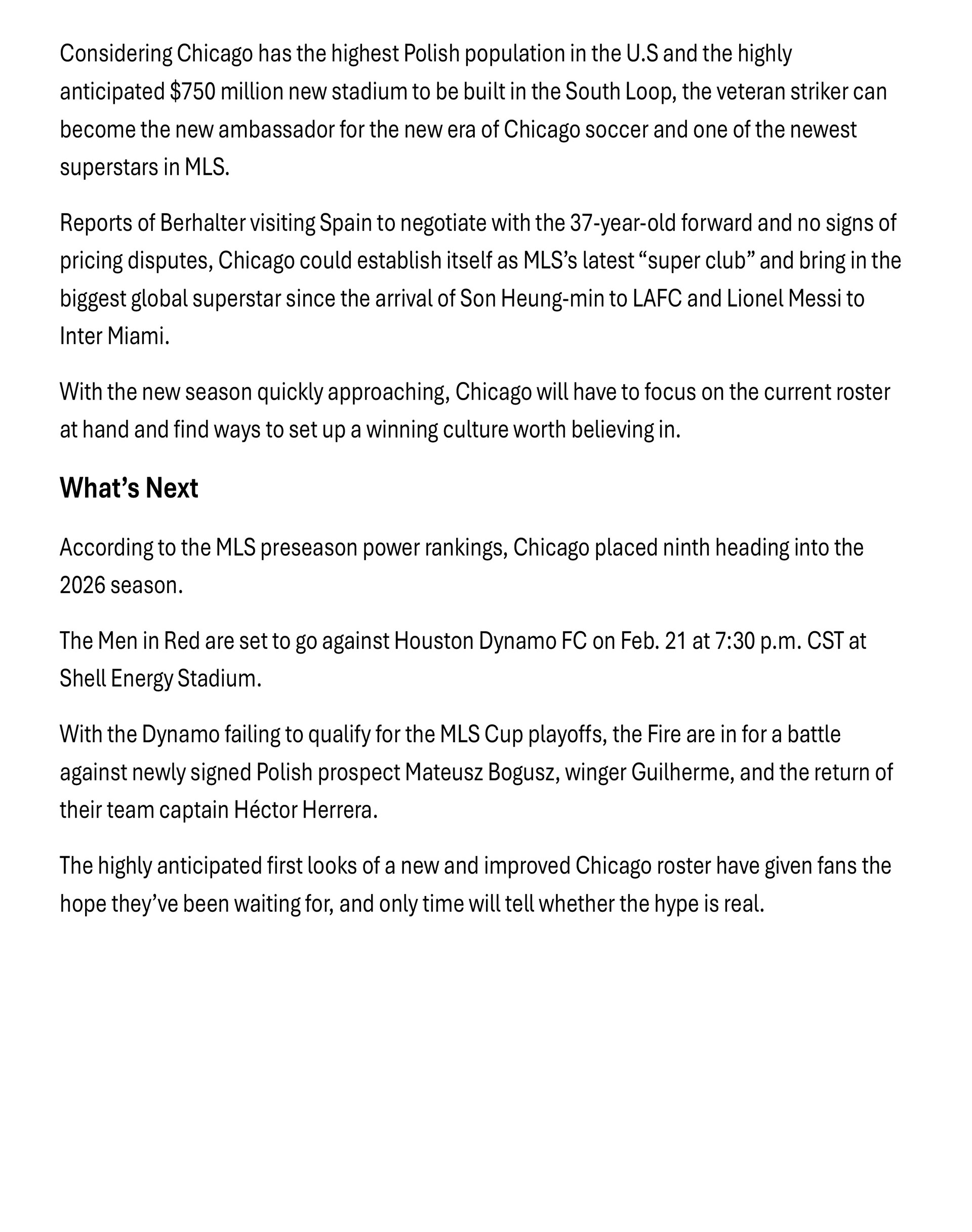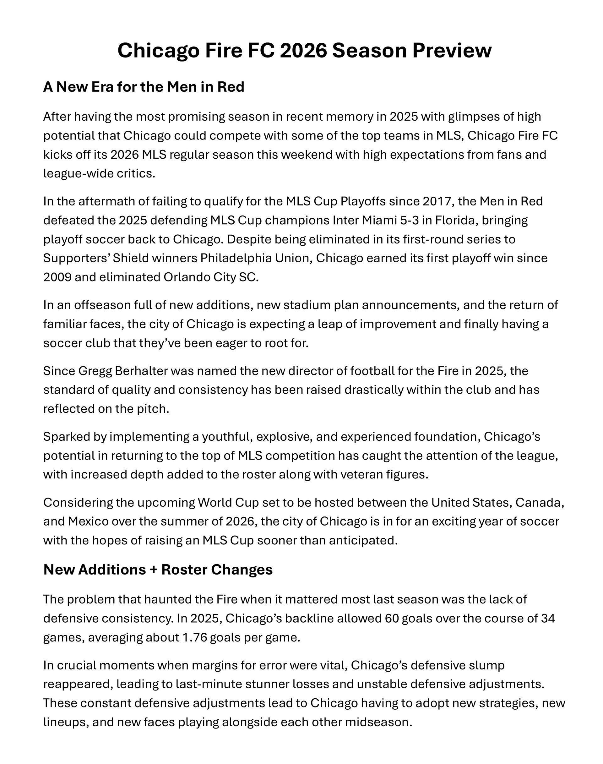 Chicago Fire FC 2026 Season Preview